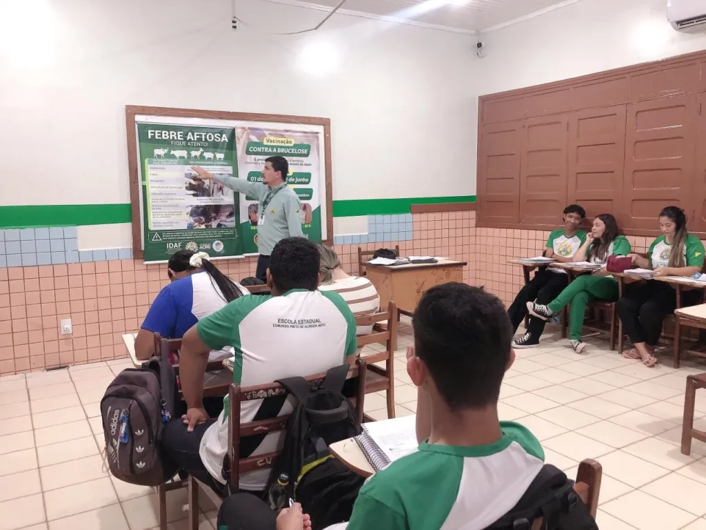 No período da tarde, a equipe do Idaf também promoveu educação sanitária para alunos do 5º ano na Escola Municipal Novo Horizonte e na Escola Estadual Edmundo Pinto de Almeida para alunos do ensino médio.