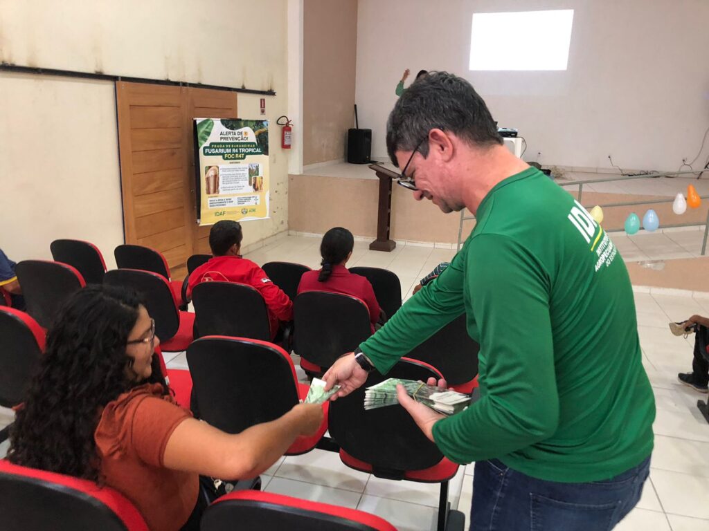 Além do levantamento fitossanitário, o Idaf promoveu uma capacitação para produtores em Tarauacá, abordando temas relacionados à sanidade da bananicultura. Durante a atividade, foram apresentados conteúdos sobre a identificação de sintomas, medidas fitossanitárias e práticas de biossegurança voltadas à prevenção da disseminação de pragas e à redução de prejuízos econômicos.