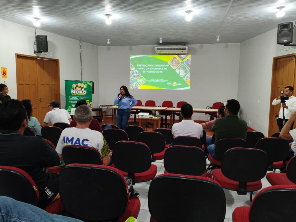 Para capacitar e levar novos conhecimentos aos produtores de banana, o governo do Acre, por meio do Instituto de Defesa Agropecuária e Florestal do Acre (Idaf), realizou nesta quarta-feira, 3, no auditório da Universidade Aberta do Brasil (UAB), em Cruzeiro do Sul, o curso de prevenção e combate ao moko da bananeira. A capacitação reuniu engenheiros agrônomos, técnicos e produtores rurais, com o objetivo de orientar sobre o manejo adequado da cultura e as medidas necessárias para identificar, conter e erradicar focos da praga.