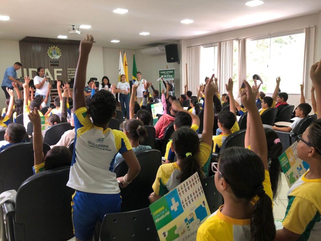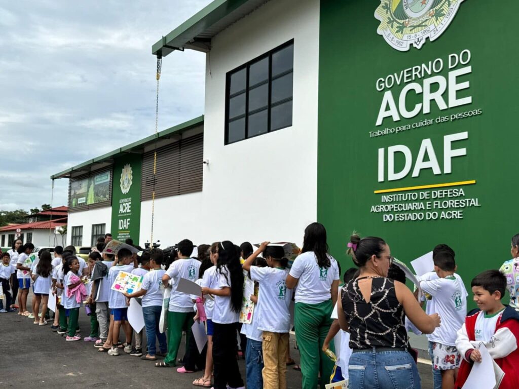 O Instituto de Defesa Agropecuária e Florestal do Acre (Idaf) recebeu, na manhã desta sexta-feira, 24, a visita de 65 alunos do ensino fundamental, anos iniciais, da Escola Zuleide Pereira. A ação marcou o encerramento das atividades educativas do Projeto Sanitarista Mirim desenvolvidas ao longo do ano com os estudantes e teve como objetivo a entrega dos certificados de participação.